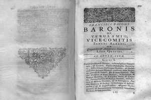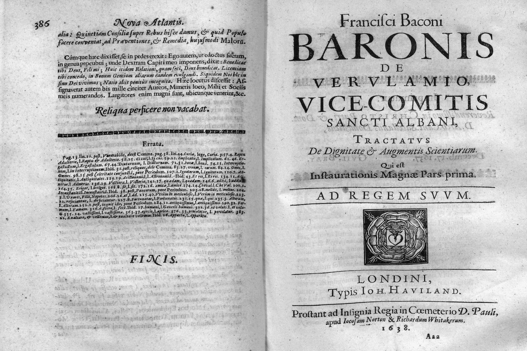 Francisci Baconi, Baronis de Vervlamio, vice-comitis Sancti Albani, opervm moralivm et civilivm. - [London] Londini : [Whitakerum] excusum typis Edwardi Griffini, prostant ad insignia regia in coemeterio d. Pauli, apud Richardum Whitakerum, 1638.