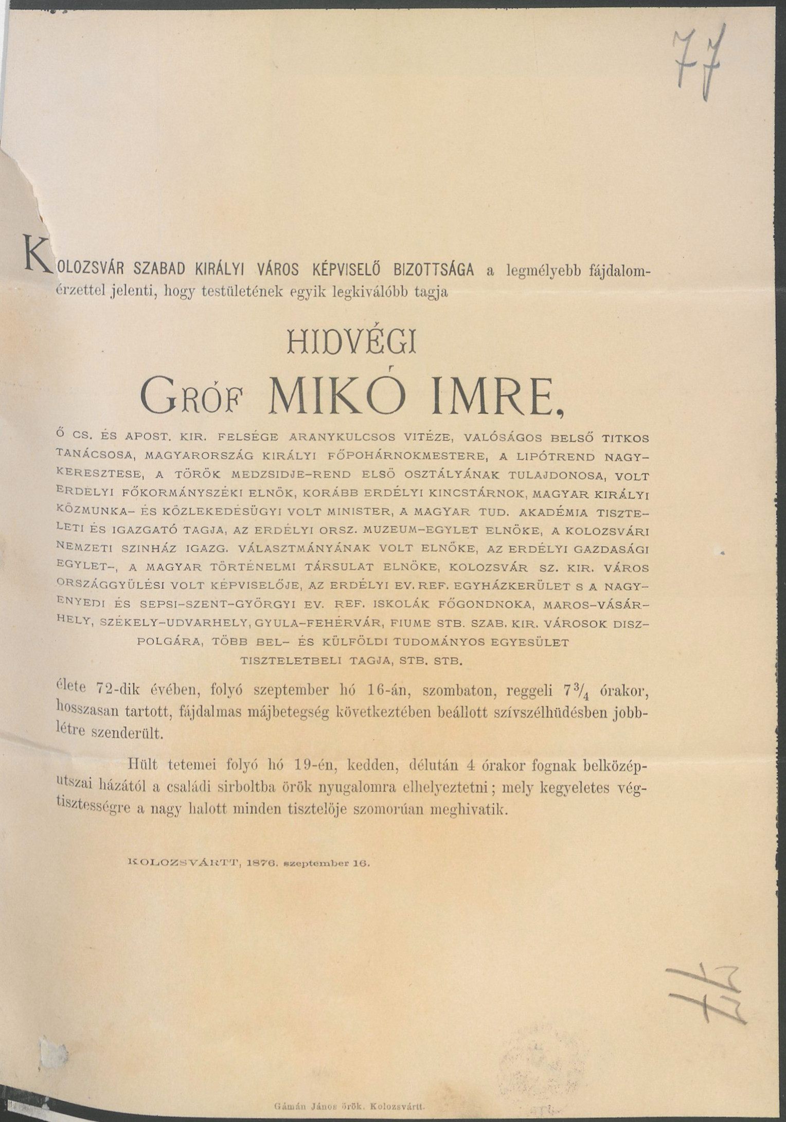 Gyászjelentések az Esztergomi Főszékesegyházi Könyvtár gyűjteményéből Mikó Imre gyászjelentései